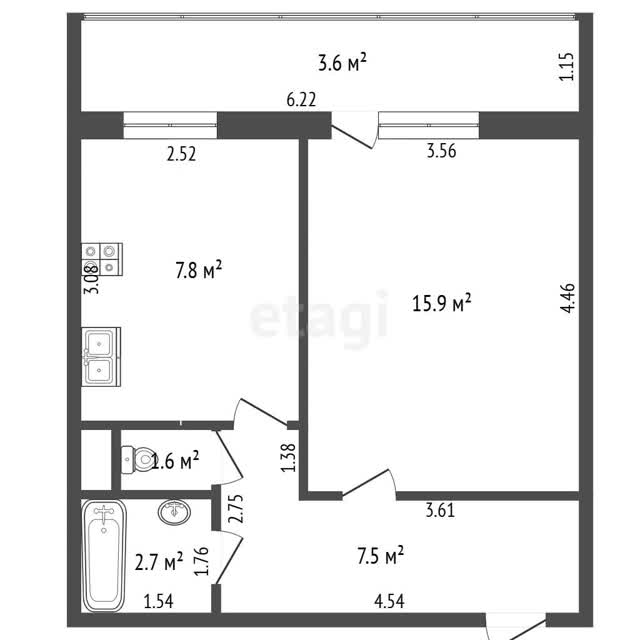 - Площадь кухни7.8 м²